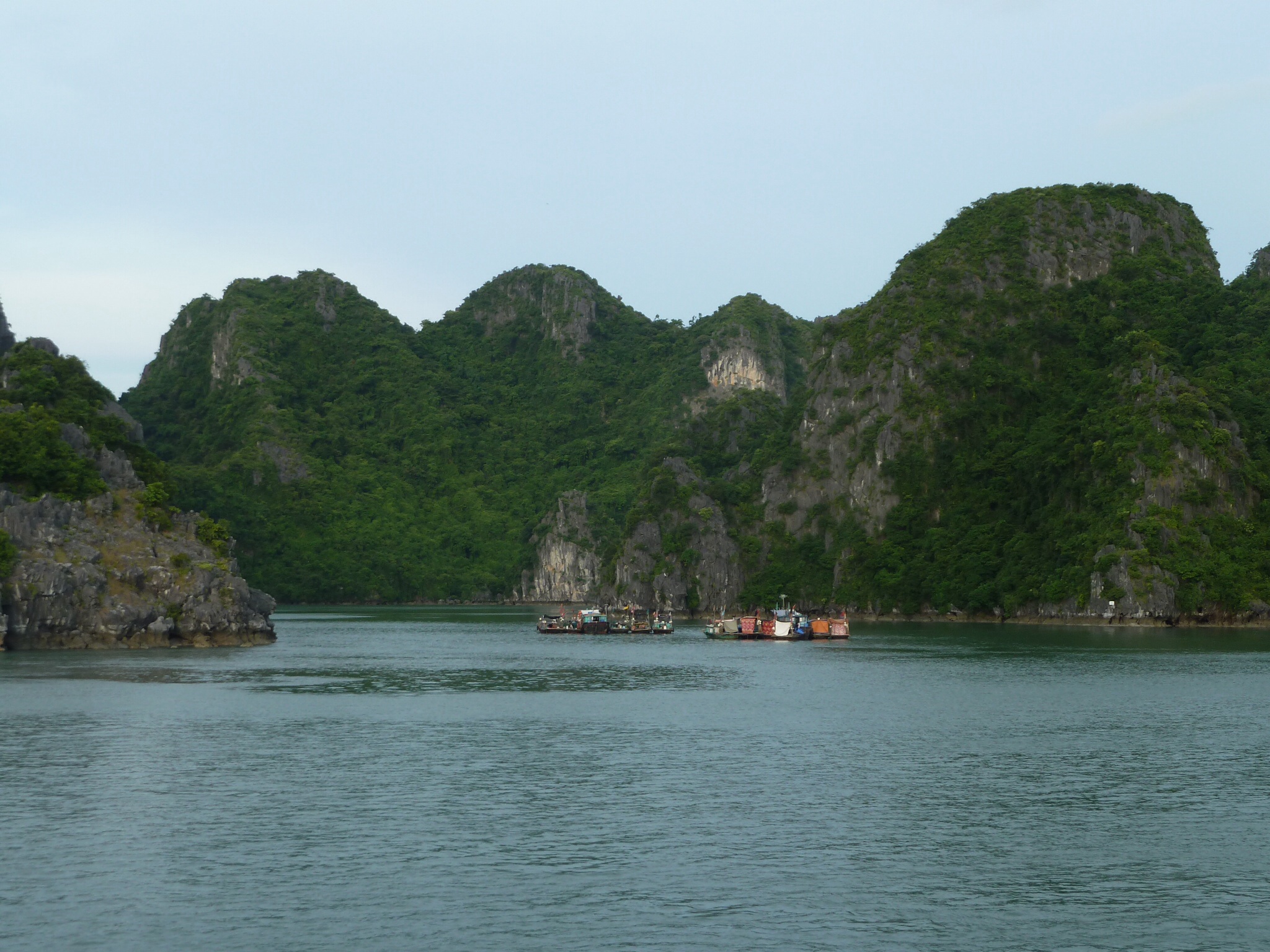 Beim Besuch der schwimmenden Fischerdörfer hat die Bucht dann endgültig ihren Reiz verloren. Gelangweilte vietnamesische Fischer schippern die mit Hüten und Schwimmwesten aufgemotzte Touristen durch ihr Wohngebiet, das aus einigen wenigen Hütten besteht. Die Perlen- und Fischfarmen werden von dünnen Hunden bewacht, die in kleinen Käfigen ein elendes Dasein zu fristen scheinen. Die Perlenfarm, die in einem edlen Geschäft Perlenketten für über 600 Euro verkauft, ist so fehl am Platz wie es nur irgendwie möglich ist.